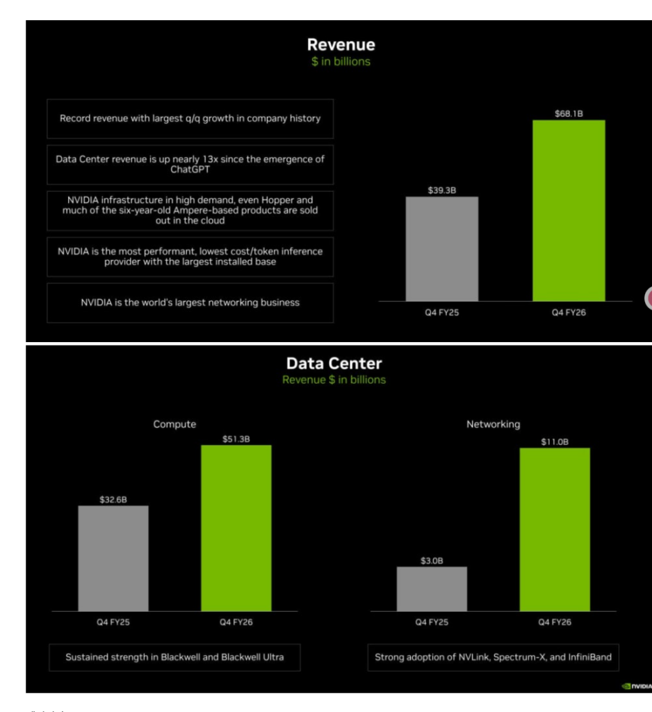 엔비디아( $NVDA)의 2026 회계연도 4분기 실적 (시간외 +3.8%)