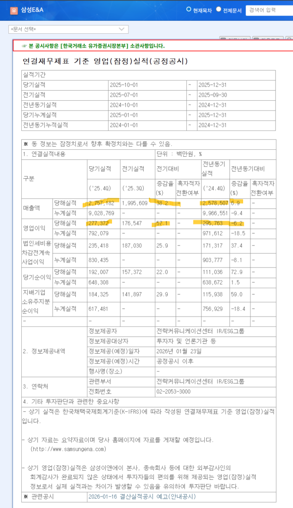 4Q25 2.76조 2.77천억 3Q25 1.995조 1.77천억