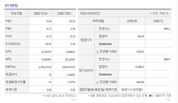 값보정 시, fPER 7.92 수준. 역사적 PER 8.146배 수준. 약간 저평가 수준.