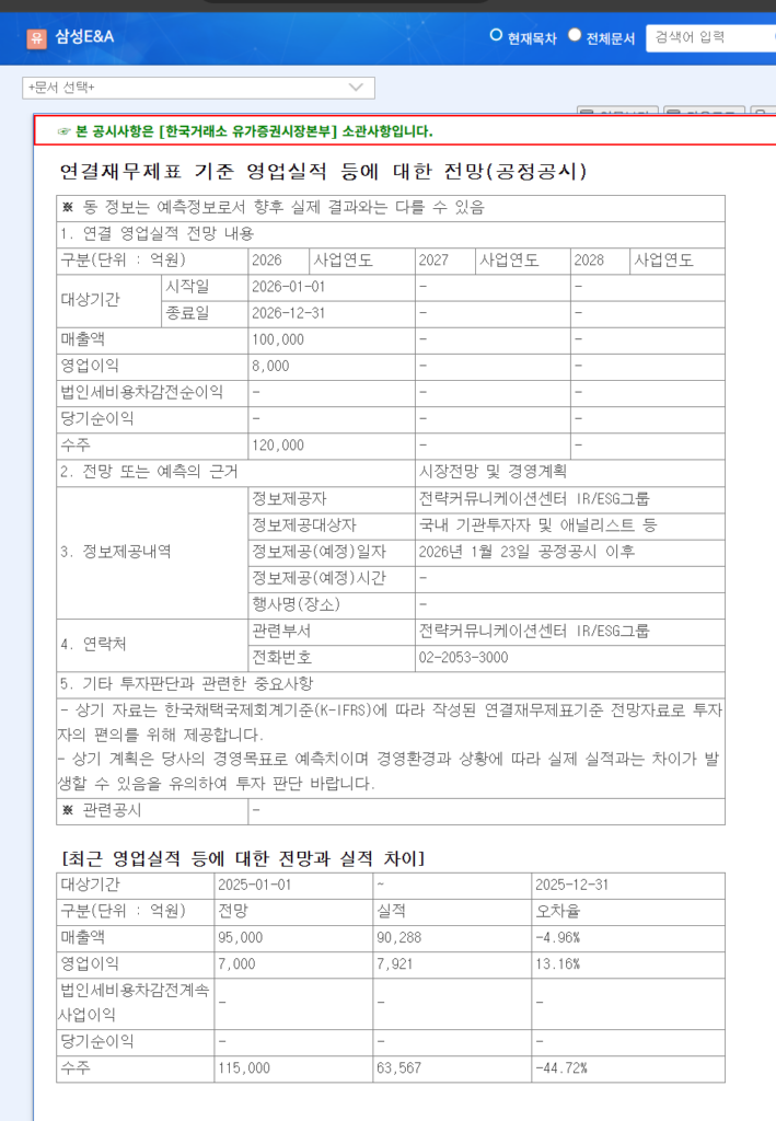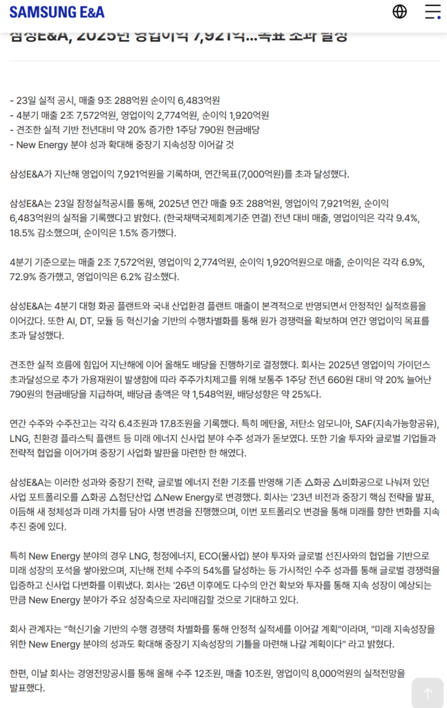 삼성E&A가 삼성전자, 삼성바이오로직스, 삼성전기의 사업을 수주하여